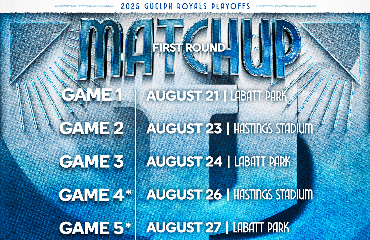 The Guelph Royals are officially taking on the London Majors in the first round of the 2025 Intercounty Baseball League playoffs.